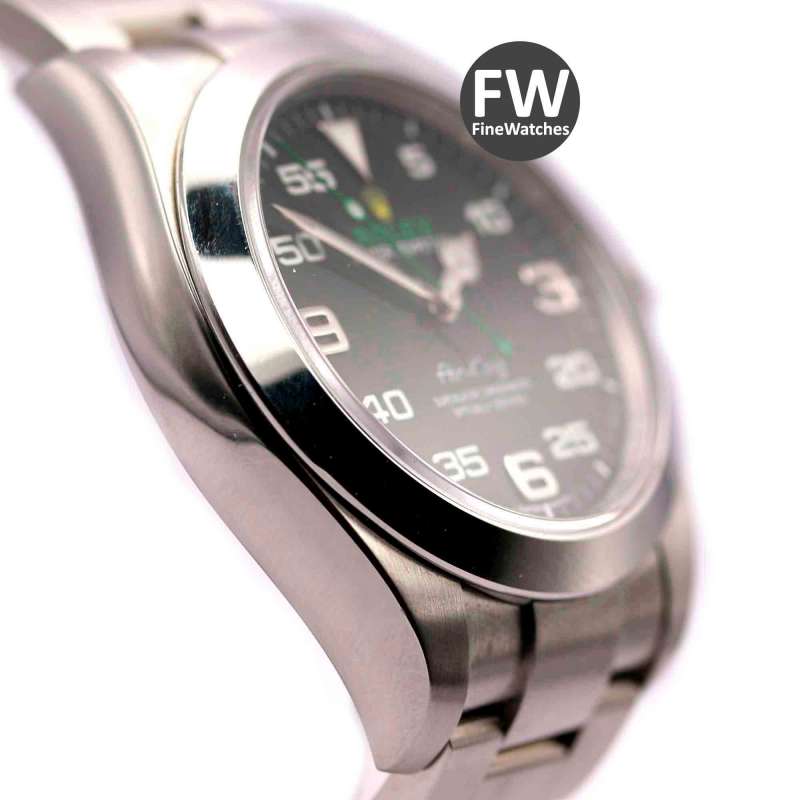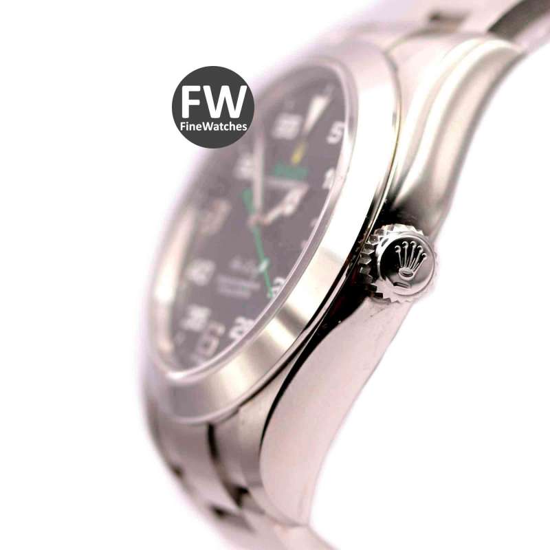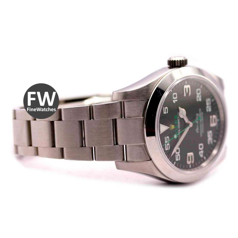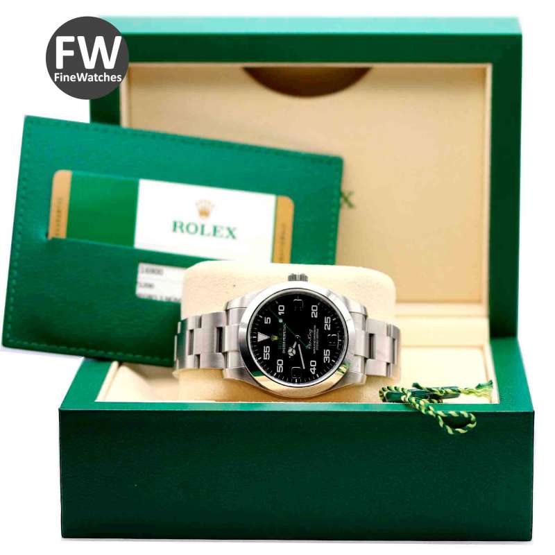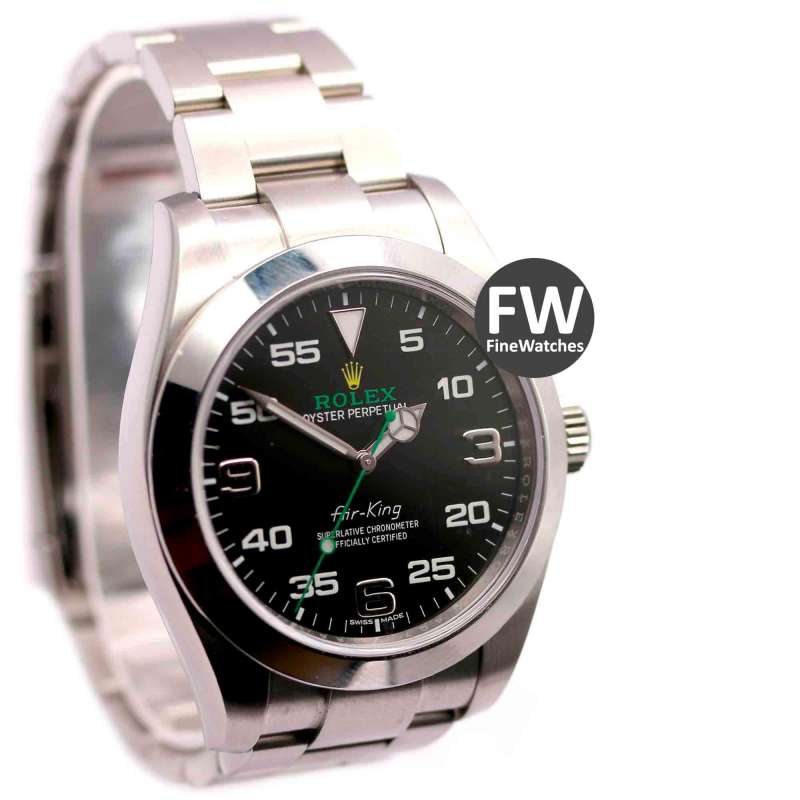 Rolex Air King. Ref-116900. (1) Cómo nuevo. Estuche y documentación (año 2017). Caja de acero, diámetro 40mm. Brazalete de acero. Cristal zafiro, esfera negra, números árabes. Movimiento automático, calibre 3131. Hermetismo 10ATM.