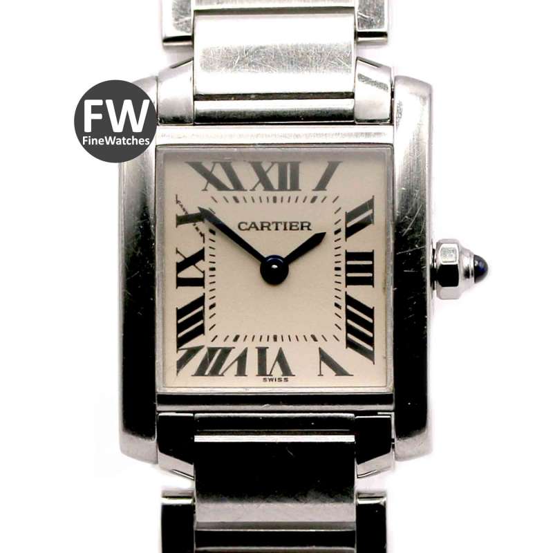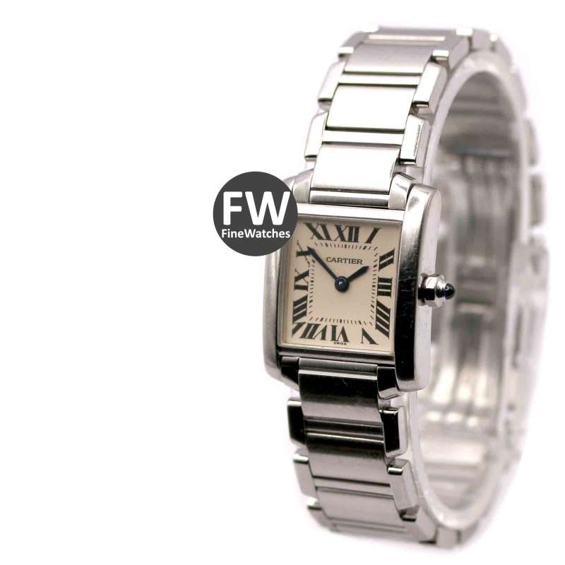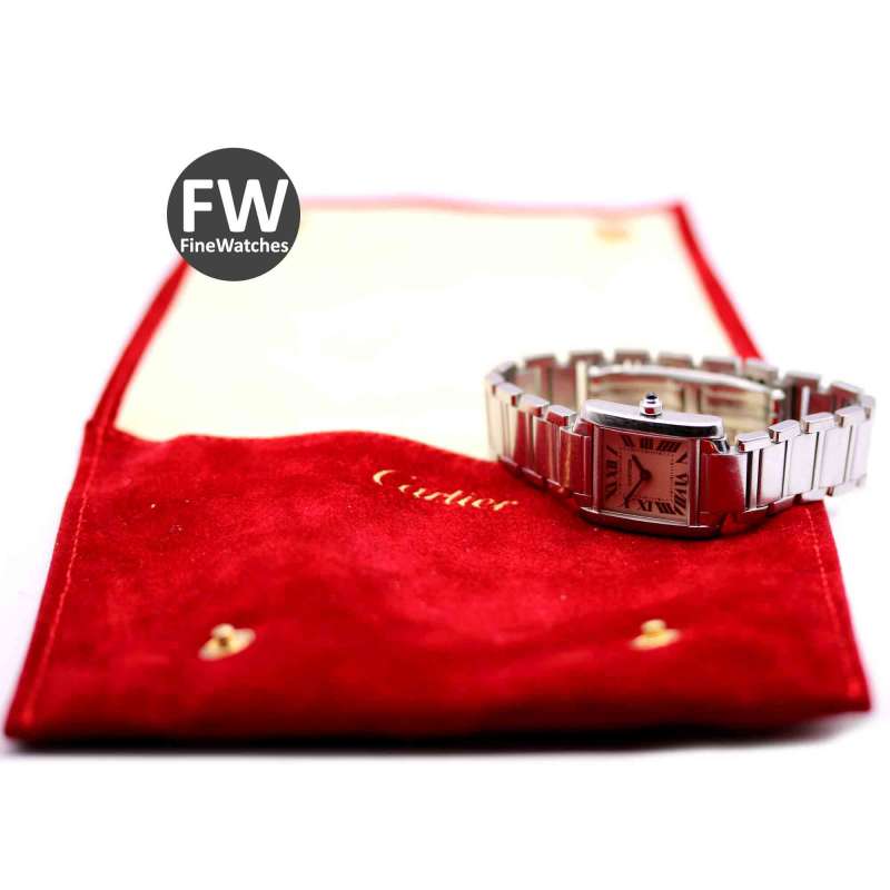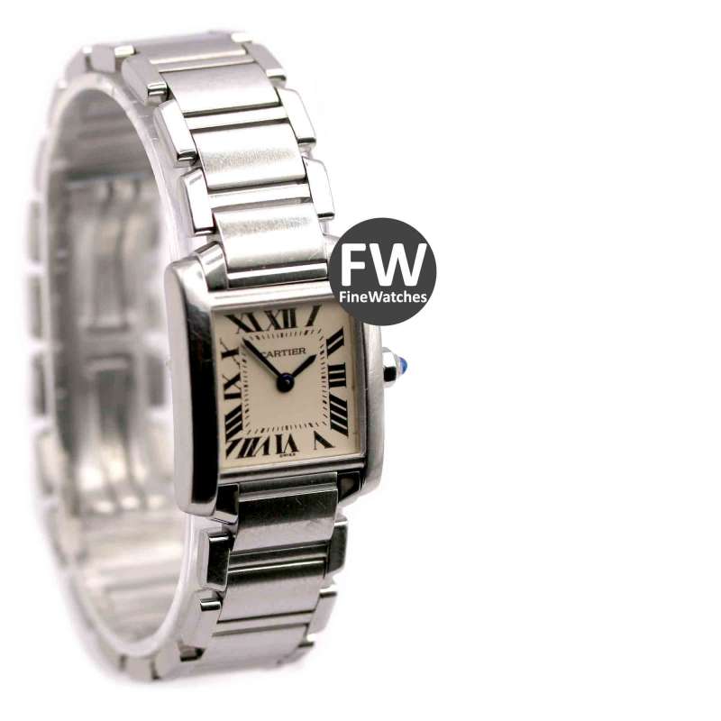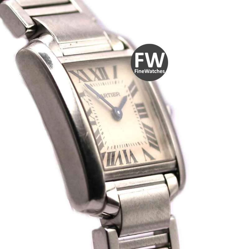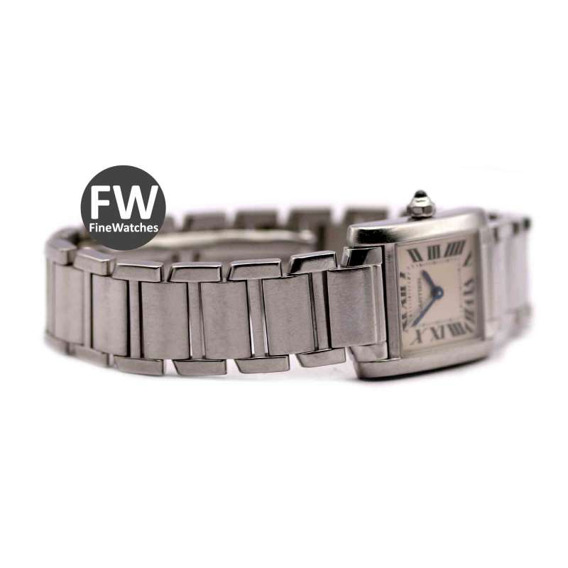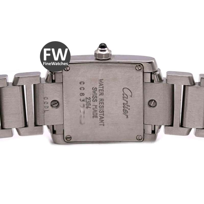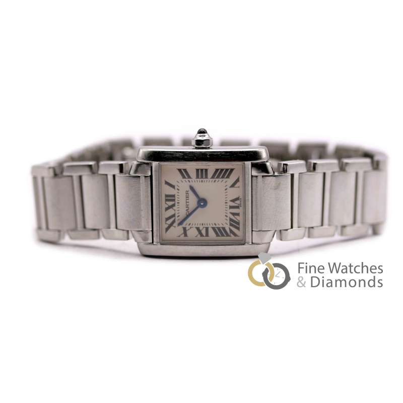 Cartier Tank Française. Ref-2384. (1) Cómo nuevo. Funda de Cartier y un año de garantía. Caja de acero, diámetro 20x25mm. Brazalete de acero. Movimiento de cuarzo. Cristal zafiro, esfera plata, números romanos. Resistente al agua